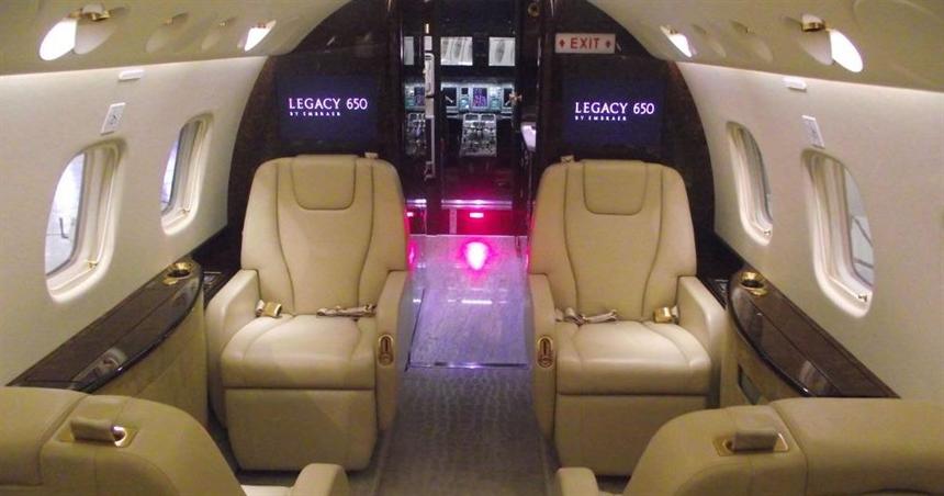 Legacy 650 базируется в аэропорту EGGW и имеет пассажировместимость 13 человек.